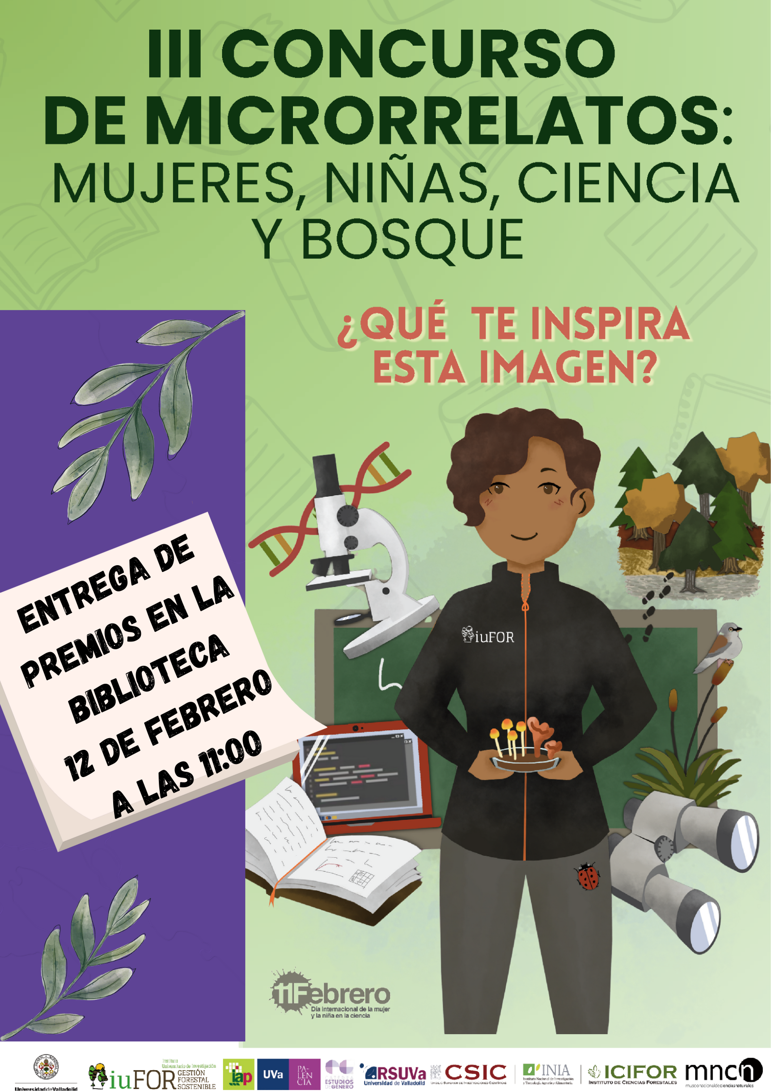 A las 11:00 h., comienza la entrega de premios del III Concurso de Microrrelatos: Mujeres, Niñas, Ciencia y Bosque organizado por el grupo de mujeres del iuFOR.